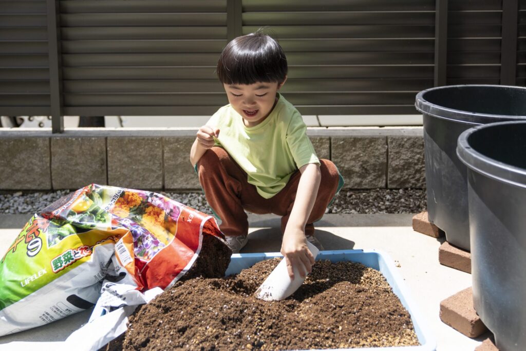 プランターを並べ、鉢底ネットを敷き、土を入れる。ただの準備作業も、家庭菜園初心者の我々にとっては発見の連続。“未来を育てる時間”のために、今できることを重ねていきます。