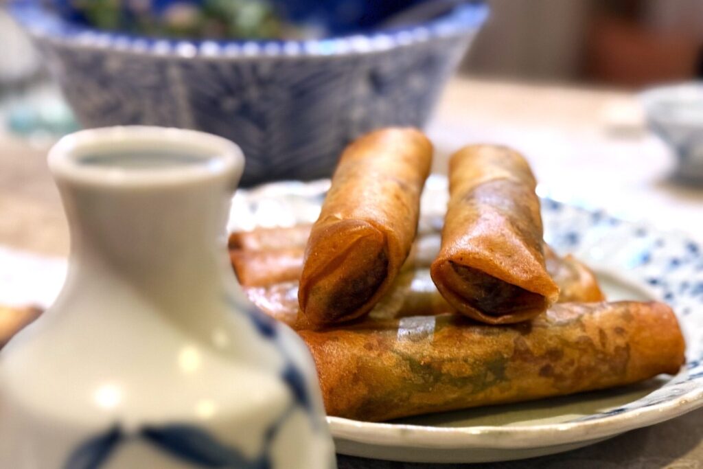 「ベトナムの揚げ春巻き。青紫蘇、赤紫蘇、ミント、サニーレタスで巻いて食べるのですが、ミントが入ることに驚かれます。でも、口の中で油をさっぱりとリセットしてくれて、ついつい手が伸びるんです」。