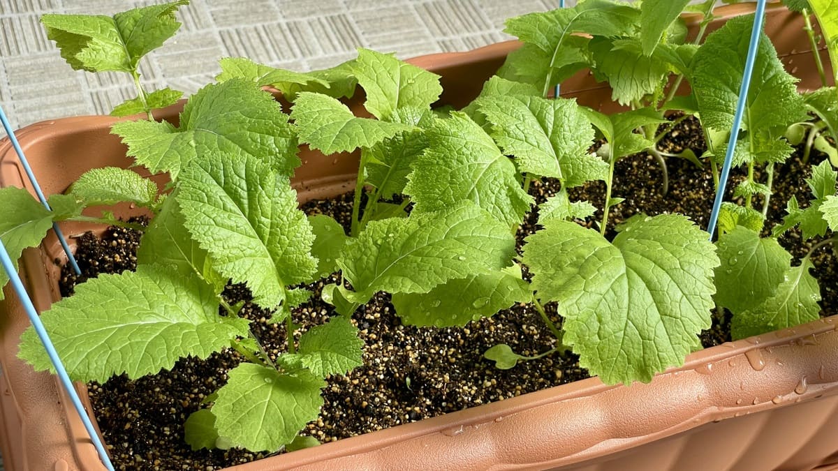 からし菜は、ピリッとした辛味が特徴の葉物野菜で、家庭でも手軽に栽培できます。プランターを使えば場所を選ばず、自宅のベランダでも育てられます。実際に育ててみると手間もかからず、毎日少しずつ大きくなっていく様子を観察するのが楽しい野菜でした。