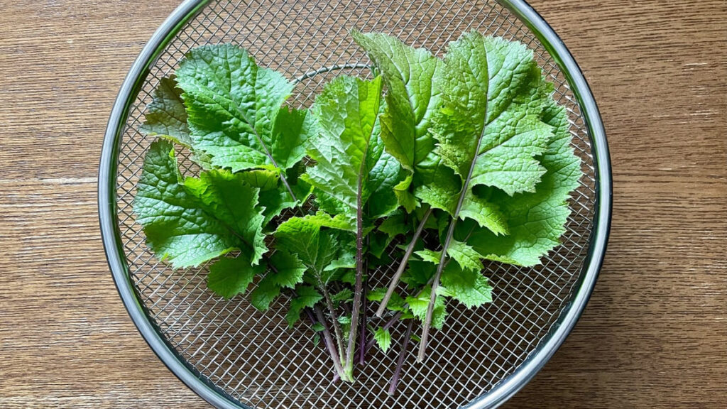 ほうれん草や小松菜のおひたしとは違い、ピリッとした辛味がアクセントになります。サッと湯に通すことで辛さがやわらぎ、食べやすくなりますよ。